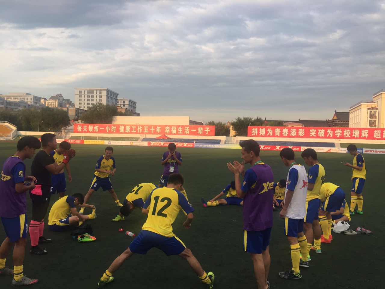 在比赛过程中会遇到各种挫折,比如战况不利、对手太强、意外擦伤,这些都是不可避免的,对于种种突发状况队员们习以为常,勇敢面对。在本次全国总决赛的小组赛第一轮比赛中,我校以4:2力克上赛季总决赛季军中国地质大学,取得首场赛事开门红,第二轮比赛中面对强敌,惜败于华南理工大学广州学院,出线形势严峻,这个时候队员们心情有些失落,不过在教练的引导下很快平复情绪、调整心态、积极总结、迎难而上,终于成功晋级全国前八强。在四分之一决赛中,我校足球队先失一球,可谓战况不利,但队员们都顶着压力拼着劲,很快追平比分,最终以2:1的成绩逆转战局击败北京科技大学晋级全国总决赛四强。而比赛过程中的擦伤更是家常便饭,队员们多多少少都会在赛场上受一些伤,守门员郎朗在比赛前二十天才摘除手中的钢钉,为了在大学里不留遗憾,强烈要求参加这次的比赛。教练在综合考虑赛况和他个人的情况后,同意了他的请求。就是这样不畏挫折、迎难而上的拼搏精神,这样团结协作、互相扶持的团队精神,彰显了我校一直以来的足球精神,也体现了“兼容并蓄,追求卓越”的大海大精神。