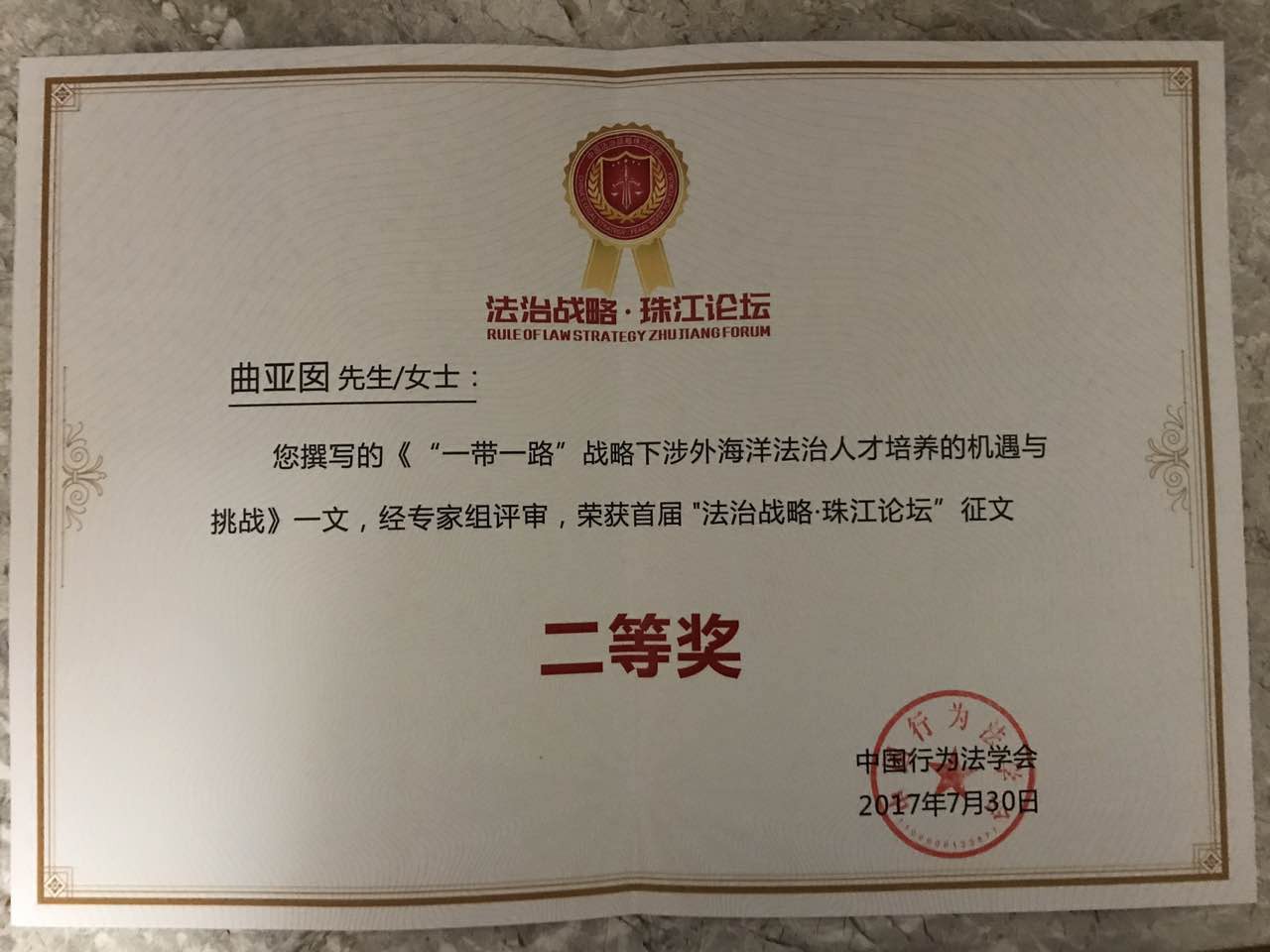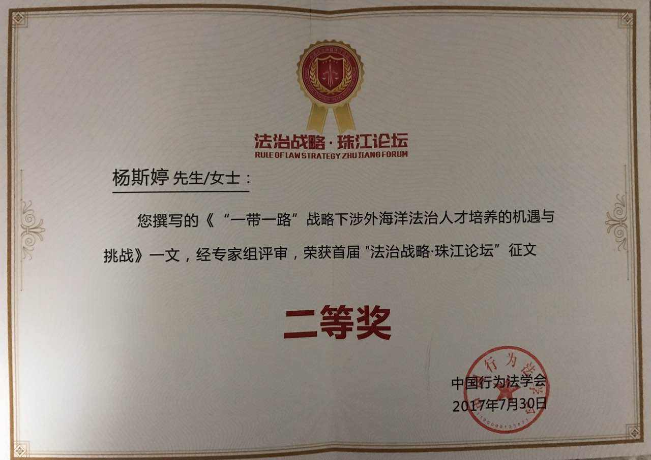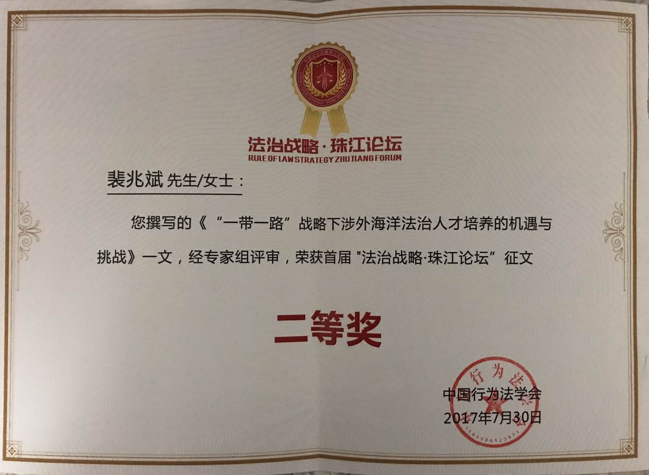 7月30日,由中国行为法学会主办的首届“法治战略 珠江论坛”在深圳举行。中国行为法学会会长、最高人民法院党组副书记、副院长江必新等领导及参会代表共计200余人参加会议。我校法学院(海警学院)院长裴兆斌应邀出席论坛,并作了“‘一带一路’倡议下涉外海洋法律人才培养的机遇与挑战”的主题发言。