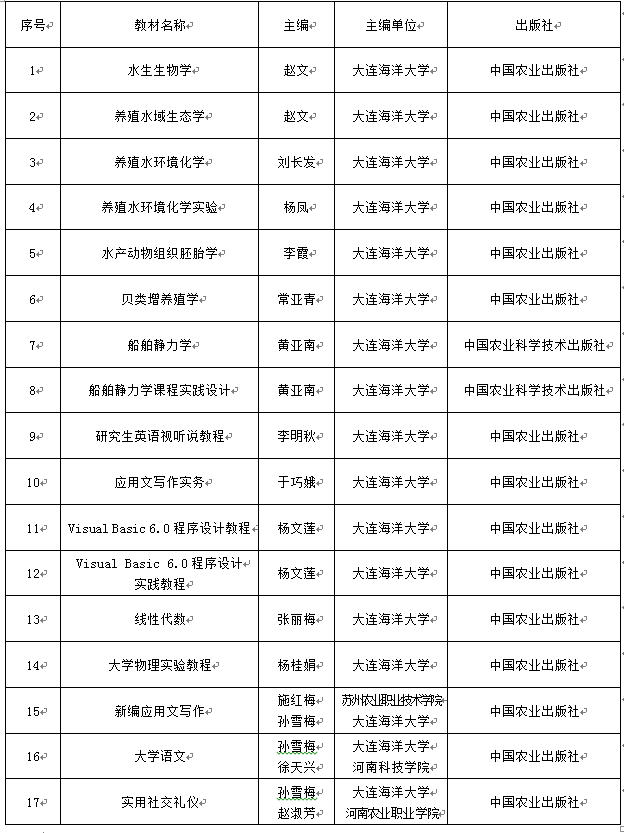 日前,农业部公布了“十三五”规划教材书目,我校共有17部教材入选。这是我校大力推进教育教学改革和不断加强教材建设工作基础上取得的又一可喜成果。具体情况见下表: