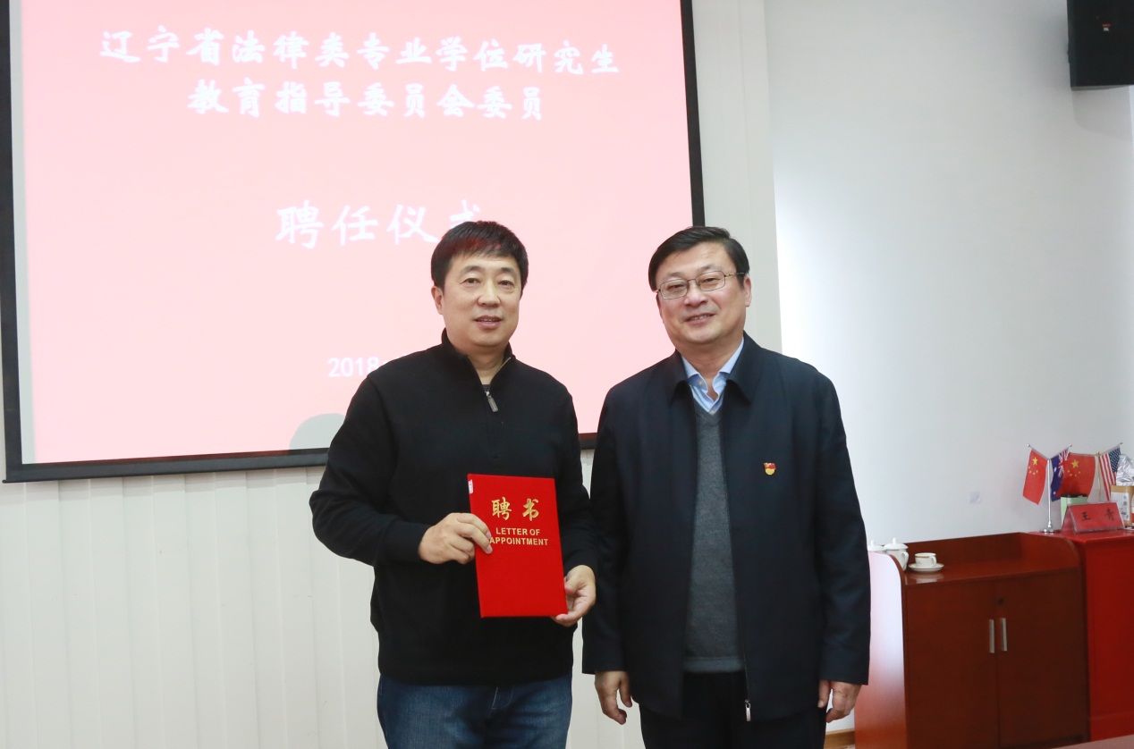 会上,进行了辽宁省法律类专业学位研究生教育指导委员会委员聘任仪式,我校法学院院长裴兆斌教授受聘为该委员会委员。