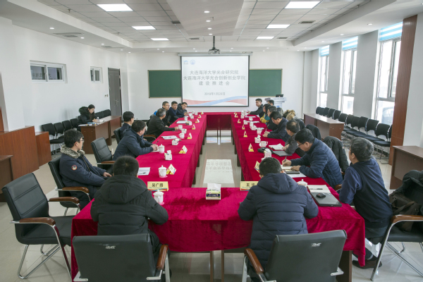 姚杰一行首先来到光合红海滩湿地科学馆、实验室和实验车间进行调研。在随后召开的推进会上,我校相关部门负责人就校企共建以及盘锦红海滩湿地退化项目进展作了汇报。李晓东发表讲话,他希望依托母校的教学和科研力量,在人才需求、共建课题、人才培养、校企联盟和文化建设方面与我校开展深度合作,实现创新链和产业链的无缝对接,促进企业产品升级并取得更大的经济效益。姚杰在总结发言时指出,李晓东是我校的杰出校友,学校为光合蟹业多年来取得的成就感到欣慰。此次走访调研的目的是商讨校企合作共建的事宜,学校愿意在人才培养、师资队伍建设等方面与公司开展深层次合作,探讨新方法,研究新路子,解决新问题。姚杰表示,学校将继续创新大学生培养模式,改革教师管理模式,计划把一些课程放在企业开展,探索校企共建教材,有步骤地让青年教师、研究生和本科生深入基层、深入产业,实现校企深度融合,提高人才的培养质量,加快科技成果的转化转移。同时,还将不断挖掘海洋文化内涵,把共建学院建设成为具有示范引领作用的品牌基地。