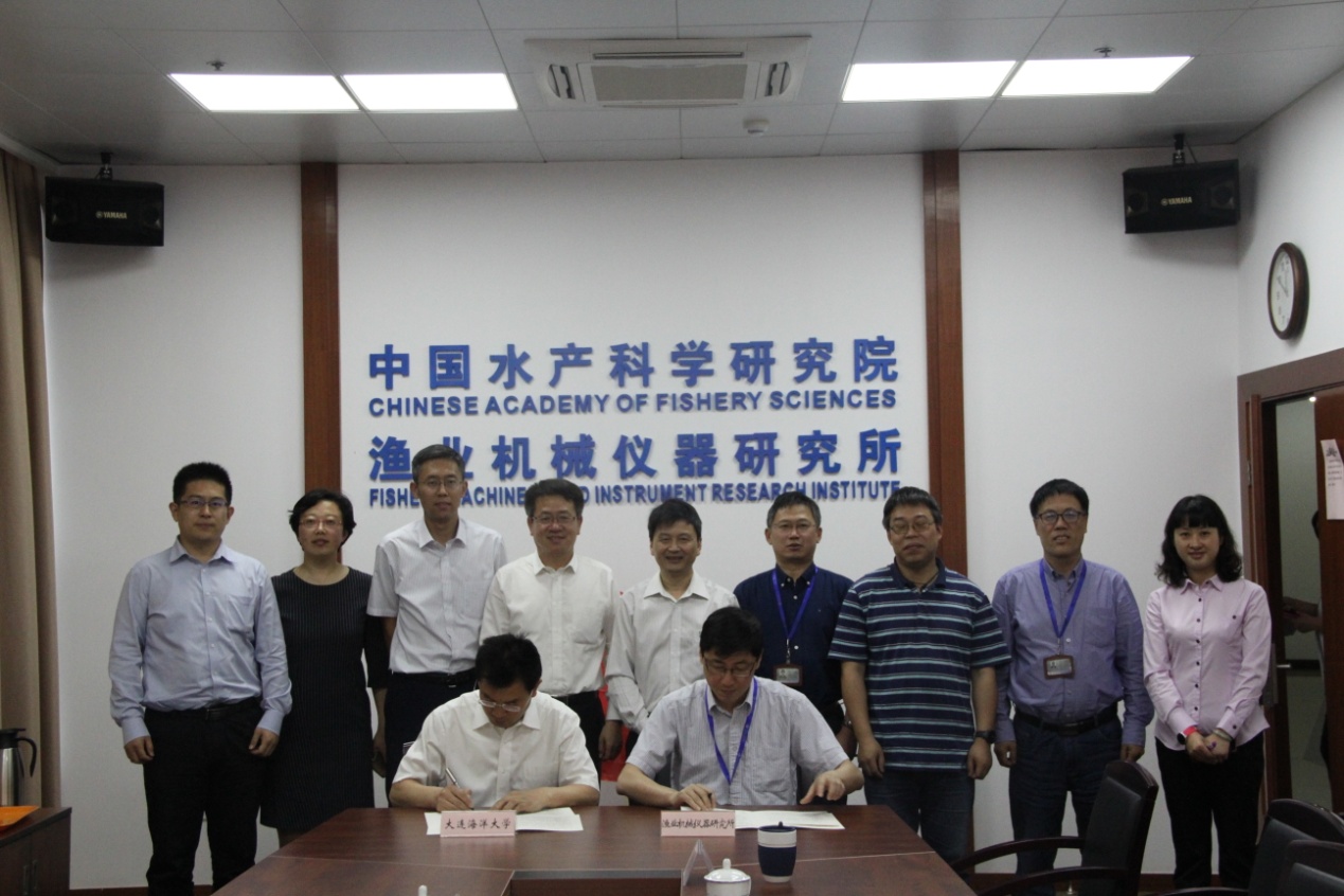 5月25日,我校与中国水产科学研究院渔业机械研究所(渔机所)签订战略合作协议,签约仪式在上海举行。我校校长姚杰、副校长胡玉才,渔机所党委书记陈剑海、副所长陈军、副所长倪琦出席仪式。双方有关部门负责人及人员参加仪式。