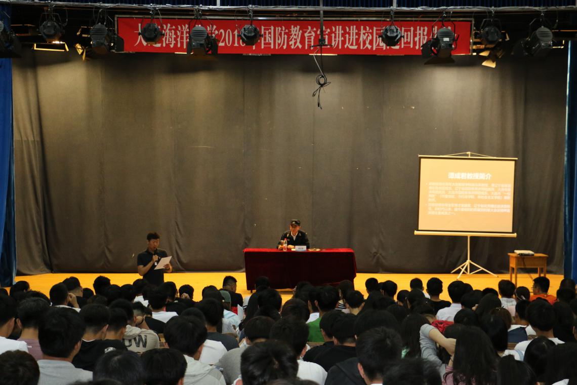 为做好2018年大学生征兵宣传教育工作,激发大学生参军报国、履行国防义务的热情,5月31日下午,辽宁省大连站国防教育宣讲进校园巡回报告会在我校渤海校区第二阶梯教室举行。海军大连舰艇学院政治系谭成君教授应邀为我校近300名师生代表作了题为《百年耻辱与百年辉煌》的报告,各学院师生代表及驻渤海校区辅导员聆听报告。