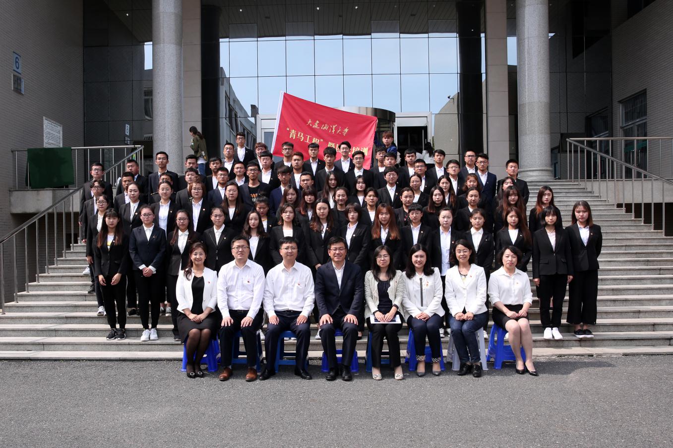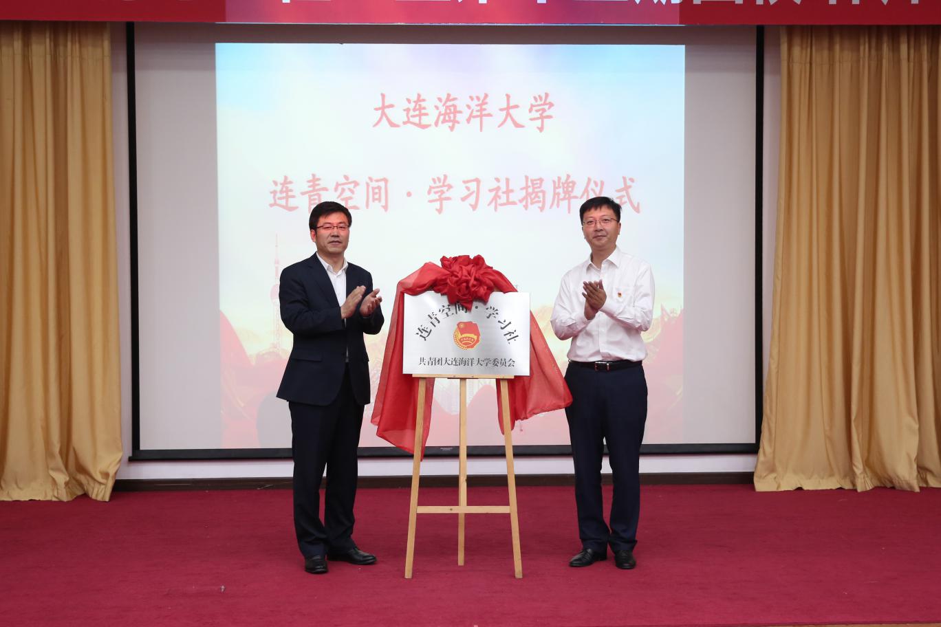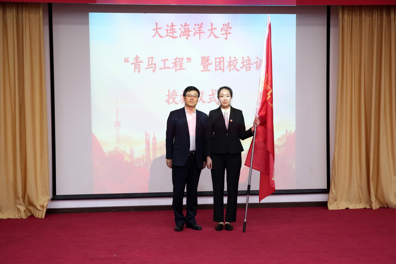 仪式上,张延松为我校“青马工程”第十五期团校培训授旗,并与赵乐天共同为大连海洋大学“连青空间·学习社”揭牌。