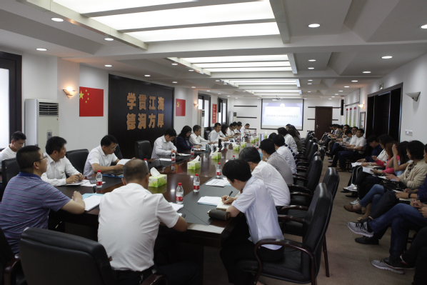 6月15日下午,我校本科教学工作审核评估推进会在行政楼五楼会议室召开。校长姚杰、副校长胡玉才出席会议。各教学单位院长(主任)、分管教学工作副院长、评建专干,学校各专项工作组牵头部门负责人及有关同志,评建办公室、教务处、教学质量监控与保障中心有关人员参加会议。会议由胡玉才主持。