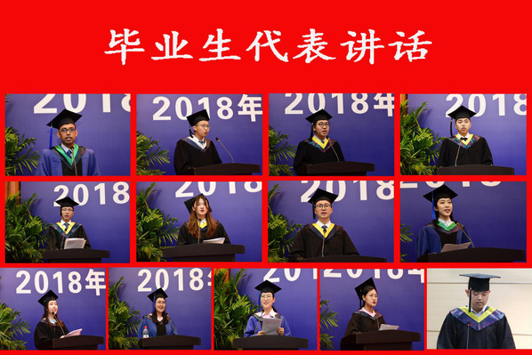 各学院毕业生代表带着对母校的深深眷恋,深情回顾了在大海大生活学习的点点滴滴,表达了对母校、老师、同学的祝福,并号召全体毕业生勇敢逐梦,勇于创新,做德才兼备、敢挑重担的新时代青年。家长代表的发言情真意切,真诚地表达了对学校教育培养学生成长成才的感激之情。
