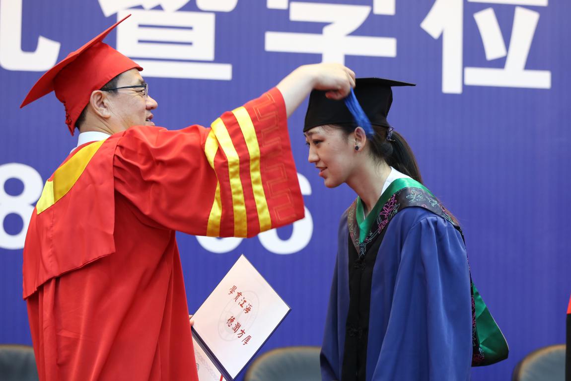 再整理一次身上穿着的学士服,再一次重新摆正垂布的位置,认真对待这庄严的时刻。一年又一年,校长都是亲手为即将远行的每一位大海大学子拨动额前的帽穗,面对不同的学生,寄予相同的嘱托,愿一路带着梦想,勇往直前,扬帆远航!