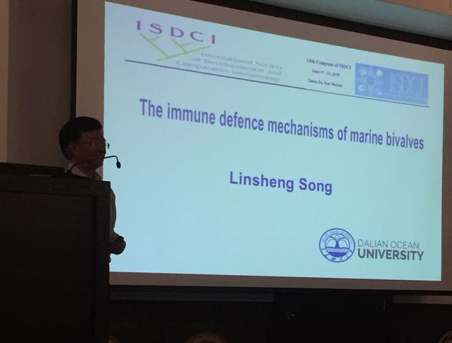 作为大会特邀嘉宾,宋林生作了题为《The immune defense mechanisms of marine bivalves》的专题报告,并同与会者开展了广泛的交流和讨论。宋林生的研究进展获得了来自University of Strasbourg的诺贝尔奖得主Jules Hoffmann教授以及华盛顿州立大学的ISDCI主席Smith教授等专家的高度认可。