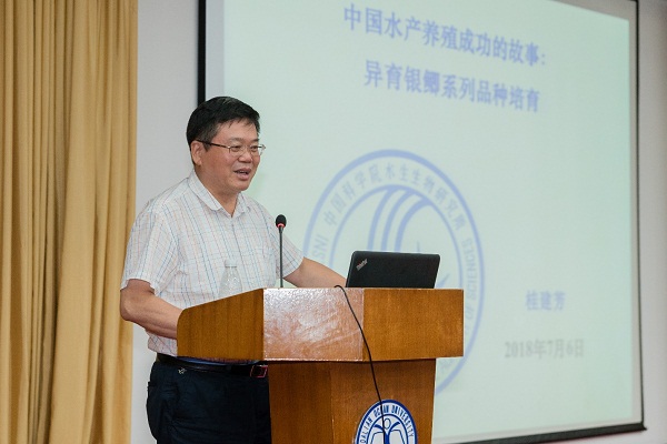 本届论坛分为青年科技论坛和高端论坛两个板块。在青年科技论坛上,大连海事大学教授杭晓明、辽宁省海洋水产科学研究院副研究员王庆志、我校教授骆小年和副研究员孙洁洁、国家海洋环境监测中心副研究员邵魁双、辽宁师范大学姚锋等6位青年专家分别作了学术报告。在高端论坛上,桂建芳院士和包振民院士分别作了题为“中国水产养殖成功的故事-异育银鲫系列品种培育”和“水生动物的分子育种需要数据驱动和精准操作”的学术报告。