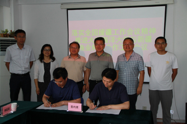 我校始终把与新疆的合作作为我校服务地方经济的重要工作。“十二五”以来,我校共与新疆开展各类科技合作13项,累计合同金额360多万元,为新疆培养本科人才600余人,促进渔业增效、渔民增收的效果显著。2017年8月,为贯彻落实国家“一带一路”倡议,推进科技成果转化,增强科技服务区域经济社会发展能力,我校与新疆博尔塔拉蒙古自治州人民政府、新疆赛湖渔业科技开发有限公司共同成立了“大连海洋大学新农村发展研究院新疆博州分院”,目前,新疆博州分院的软硬件建设已经取得初步成果。