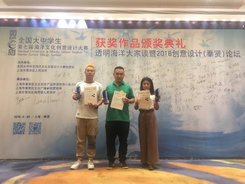 9月20日,由全国大中学生海洋文化创意设计大赛组委会 ,上海市奉贤区人民政府共同举办的全国大中学生第七届海洋文化创意设计大赛获奖作品颁奖典礼暨2018创意设计(奉贤)论坛在上海奉贤区举行。我校艺术与传媒学院教师关春阳、马钢提交的作品获得优秀教师奖,学生代表李梦齐、白林杰、康勇媛提交的影视作品《鲨祭》获得铜奖,我校获得优秀组织奖。