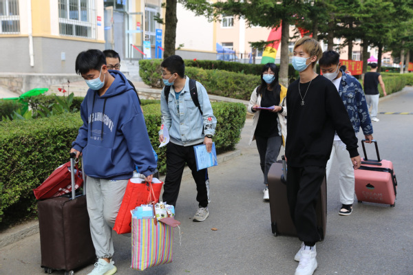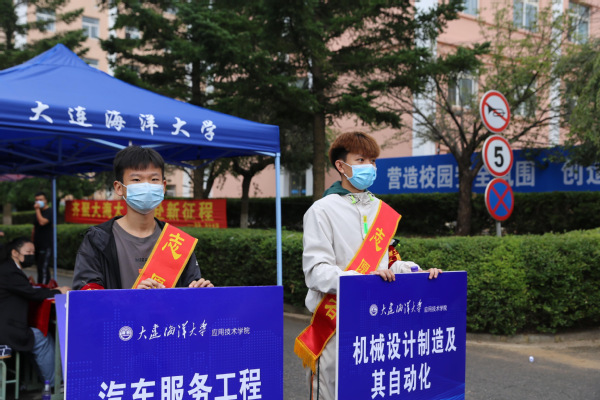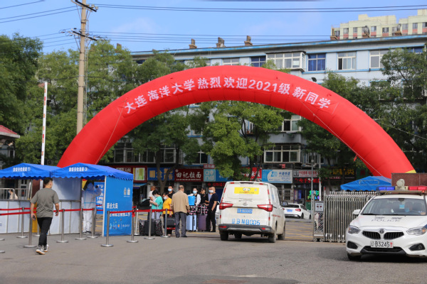 学院在瓦房店火车站设立新生服务处,安排师生志愿者提供接站服务。在进行体温检测、材料核验等流程之后,新生们由志愿者引领,乘坐迎新校车前往学院报到点。