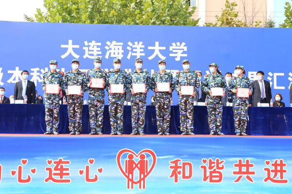 典礼上,21个军训方队接受检阅。他们昂首阔步依次通过主席台,彰显了奋发有为、朝气蓬勃的精神面貌;校领导为军训优秀学员和优秀连队颁奖,鼓励他们珍惜荣誉,再接再厉;电气与信息工程系副主任李龙华和机械工程系机械设计制造及其自动化专业2019级马兆明同学分别作为教师代表和在校生向新同学们的加入表示热烈欢迎并送上美好的祝福。2021级汽车服务工程专业郭洋同学代表全体新生表达了成为大海大学子的喜悦和感激之情。