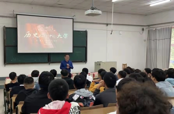 10月14日下午,校党委书记姚杰在渤海校区1教阶梯一教室为2021级蓝色英才班新生讲授《大学》第一课。教务处负责人及有关人员,2021级蓝色英才班全体学生共140余人共同聆听。