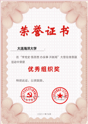 近日,我校在辽宁报刊传媒集团(辽宁日报社)主办的“学党史、悟思想 办实事 开新局”大型在线答题活动荣获“优秀组织奖”。