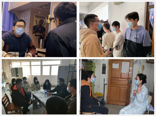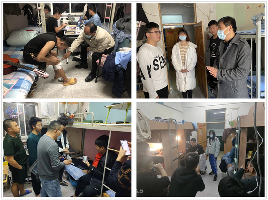在核酸检测现场,师生党员白衣为甲,先后组织3批次17000余人次师生检测,确保应检尽检、不漏一人;在学生寝室,25名教职工日均走访寝室441次,谈心谈话日均496人次,安抚学生情绪,听取学生心声,了解学生需求,扎实推进党史学习教育“我为师生办实事”活动取得新成效;在凌晨2点的深夜,及时处置突发尿路结石、发热学生送医,几天来共处置昏迷不醒、高烧、外伤学生10余人次,守护学生身心健康;在管控区,教师党员发挥先锋模范作用,巡视校园封控情况、驱离校外人员翻墙入校,清理校园卫生、维护校园秩序。学生党员率先垂范,青年抗疫突击队队员日均消杀快递物品570件,学生干部校园巡查队每日巡回检查12小时,用坚守和奉献筑起了疫情防控的坚固防线。在互联网上,教师们将专业知识和疫情防控的课程思政内容传授给学生,保障了课程教学的效果,心理健康教师每日开展线上心理咨询服务,为学生的心理健康保驾护航。