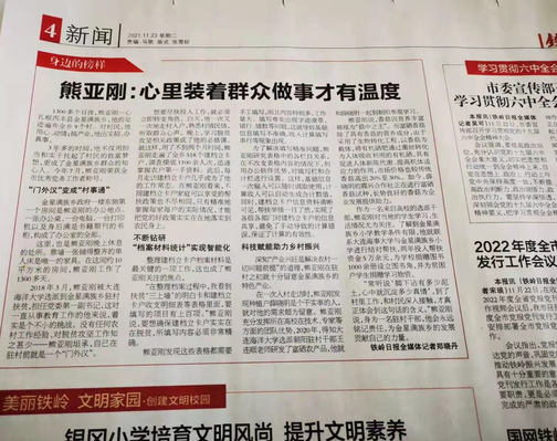 11月23日,《铁岭日报》第四版以“心里装着群众做事才有温度”为题报道我校扶贫干部熊亚刚同志扶贫工作事迹。