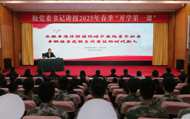 为全面贯彻党的教育方针,实施新时代立德树人工程,厚植家国情怀,弘扬新时代雷锋精神,3月10日,校党委书记衣庆焘在黑石礁校区图书馆报告厅讲授2025年春季“开学第一课”。党委研究生工作部、党委学生工作部、校团委、马克思主义学院负责人,各学院分管学生工作领导、团委书记、辅导员,马克思主义学院教师和学校各级学生代表共270余人聆听了“开学第一课”。