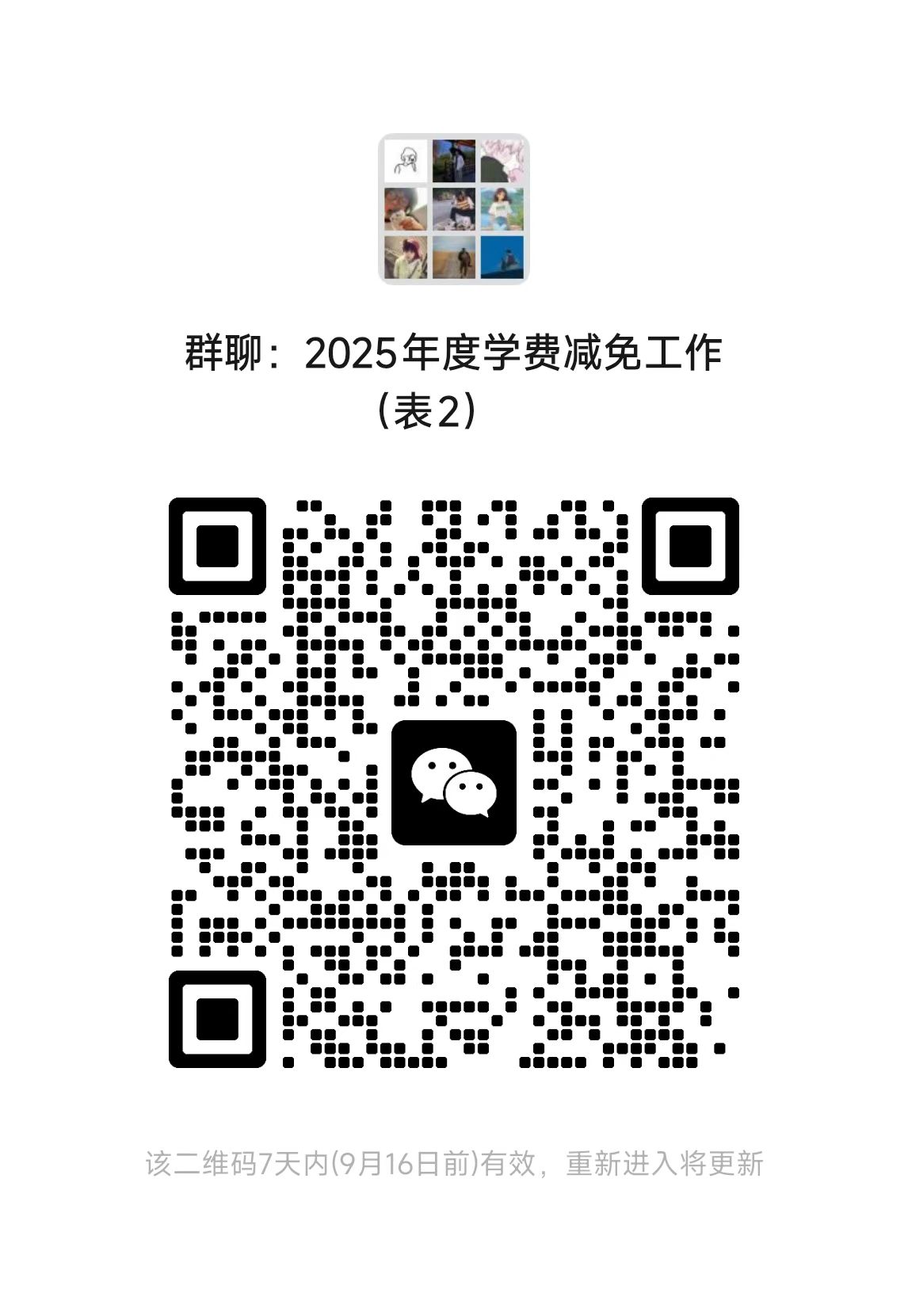 (5)办理上述手续学生需于10月9日前进入附件3、附件4对应微信群,10月10日将在群内开始信息复核工作。(办理学费补偿的学生请加入附件3微信群;办理学费减免的学生请加入附件4微信群;请通知学生务必加入对应微信群,涉及到后续信息核对,两个都办理,那就都加入。群二维码过期或任何问题请联系:13118732226(电话同微信))