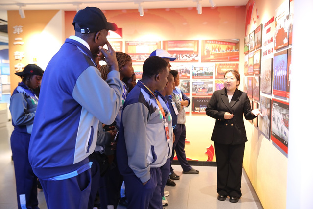 9月27日,来连参加大连2025年国际大体联足球世界杯的尼日利亚拉各斯州立大学女队一行17人由代表团团长Simeon Adetunji Dosunmu带领,来我校调研参观。副校长刘文合接待了Simeon Adetunji Dosunmu一行并陪同调研。