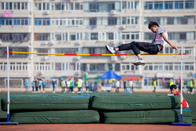 场上,运动健儿们全力以赴、奋勇拼搏:短跑选手俯身起跑、全力冲刺,目光坚定;跳远运动员助跑、腾跃、落地,动作连贯有力;接力赛中,红白相间的接力棒传递着信任与默契,声声呐喊凝聚着集体的力量。他们在奔跑、跳跃、投掷中生动诠释“更高、更快、更强”的奥林匹克精神,展现出新时代大学生蓬勃向上的青春风采。