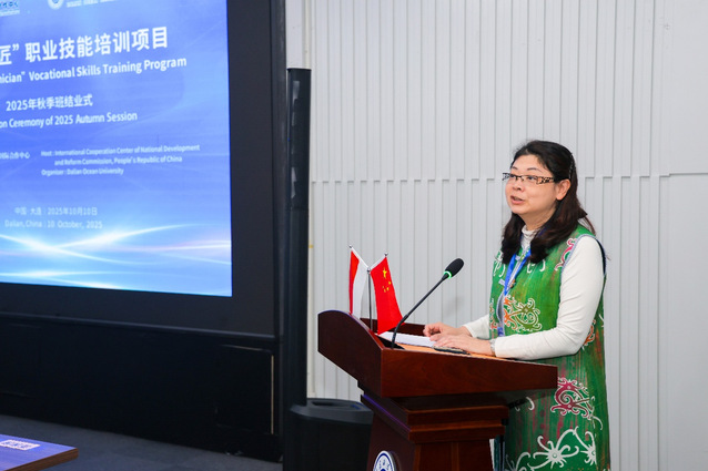 授课教师代表李冰玉对学员们顺利完成学业表示热烈祝贺,并肯定了印尼学员在学习过程中展现出的勤奋好学与积极探索精神。她期望学员们能将此次培训所获得的知识与技能有效应用于本国渔业实践,成为推动中印尼渔业合作与交流的桥梁。