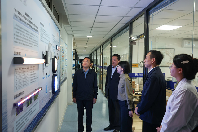 马涛一行先后调研了我校水产设施渔业教育部重点实验室、北方海洋数据应用工程中心、现代水产苗种繁育中心等科研实验平台。