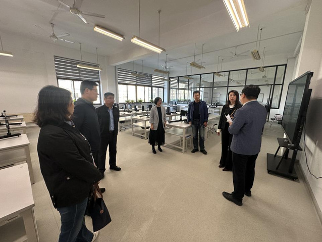 会上,双方系主任围绕基础课程建设、实验室建设、大学英语四六级考试辅导以及助力学生考研等工作,开展点对点交流,分享具体经验与做法。调研期间,我校调研人员参观了大连工业大学的大学英语语言实验室和物理实验室。