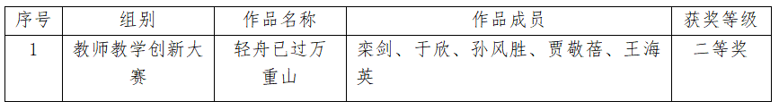 另外,由栾剑老师带领的教师团队也在教师教学创新大赛获得了二等奖。