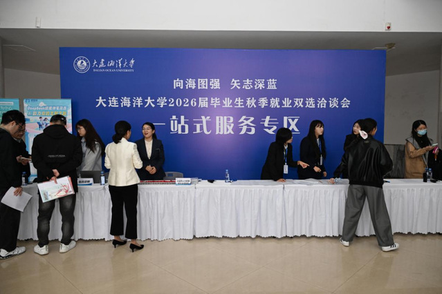 双选会现场,毕业生们手持精心准备的简历,积极与用人单位沟通,围绕岗位职责、发展路径、招聘流程等进行了深入交流。港口航道与海岸工程专业毕业生宋伟东表示:“参会企业与我的专业方向高度契合,我已向多家心仪单位投递了简历,交流后更加坚定了就业信心。”机械设计制造及其自动化专业毕业生李洪研表示:“作为2026届毕业生,必须把握秋招关键期,我很早就准备好了简历并请老师指导修改,早做准备、主动出击,一定能收获理想offer。”恒力重工集团有限公司招聘负责人谭博文对我校毕业生给予高度评价:“大海大学生专业基础扎实,公司连续多年来校招聘,成效显著。今年公司人才需求进一步扩大,期待更多优秀学子加入。”大连辽南船厂招聘负责人李英春作为我校校友,重返母校倍感亲切,他表示:“感谢母校精心搭建的优质双选平台,希望更多大海大学子以扎实学识和踏实作风,加入辽南船厂,共创未来。”