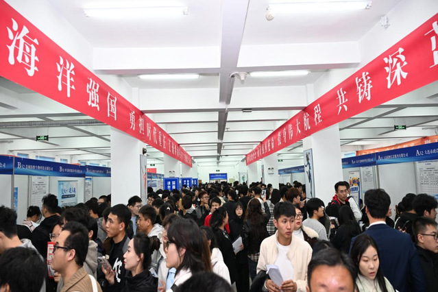 向海图强,矢志深蓝。10月17日,我校在黑石礁校区北院办公楼举行2026届毕业生秋季就业双选洽谈会。校长杜明、校党委副书记李智军到洽谈会现场与多家用人单位和毕业生亲切交流。