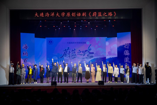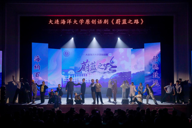 10月15日—17日,我校原创话剧《蔚蓝之路》在黑石礁校区俱乐部首演并顺利落幕。校领导衣庆焘、杜明、李智军、卢昆,共青团大连市委员会副书记于越,大连航运职业技术学院校领导吴鹏、马旭东、张伟、李岩,大连戏剧家协会原副主席张枚,我校离退休教师代表、科级以上干部、辅导员、近三年新入职教师、黑石礁附属小学的教师代表和大连航运职业技术学院师生代表共计3000余人一起观看了演出。话剧中的三位原型大连水产学院原副院长雷衍之教授,我校优秀研究生校友、盘锦光合蟹业有限公司董事长李晓东,研发中心主任孙娜应邀出席。