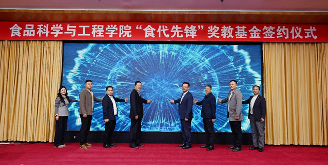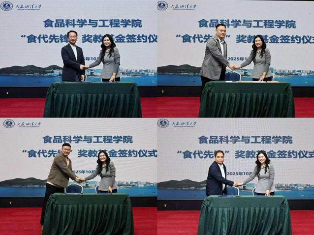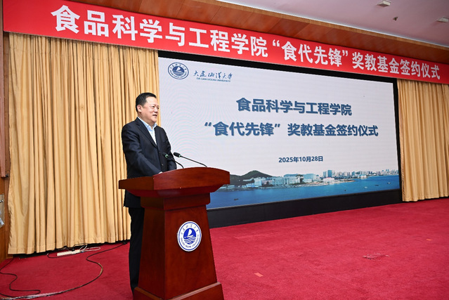 衣庆焘在致辞中向慷慨捐资的校友企业和社会企业致以最诚挚的感谢。他指出,“食代先锋”奖教基金的设立,不仅凝聚了校友对母校的深厚情谊,也体现了社会企业对人才培养的坚定担当。这不仅是对先进典型的肯定,更是对“以学生为中心、以教师为主体”办学理念的生动诠释。他希望食品科学与工程学院的全体师生,能将这份厚爱转化为前行的动力,在科研领域勇于攻克“卡脖子”难题,在育人工作中不断取得新突破,不辜负企业家和校友的殷切期望。同时,以此次基金设立为契机,进一步深化校企合作和校地协同,在人才培养、科研攻关、成果转化等方面开展更加广泛而深入的交流合作,共同为海洋强国建设和食品产业转型升级贡献力量。
