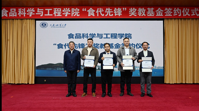 10月29日,我校食品科学与工程学院在图书馆报告厅举行“食代先锋”奖教基金签约仪式。校党委书记衣庆焘、党委副书记李智军,辽宁鸿文世纪科技有限公司党委书记、辽宁省青年企业家协会秘书长、2008届校友张奕奕,鸿文世纪教育集团副总裁、盘锦中北学校常务校长、2011届校友侯海洋,大连泓硕教育科技集团有限公司负责人、2009届校友刘超,富亿达(辽阳)低碳新能源科技有限公司总经理富松,宁可说私董会发起人、辽宁省演讲学会常务副会长申晓宁出席仪式,共同启动食品科学与工程学院“食代先锋”奖教基金。