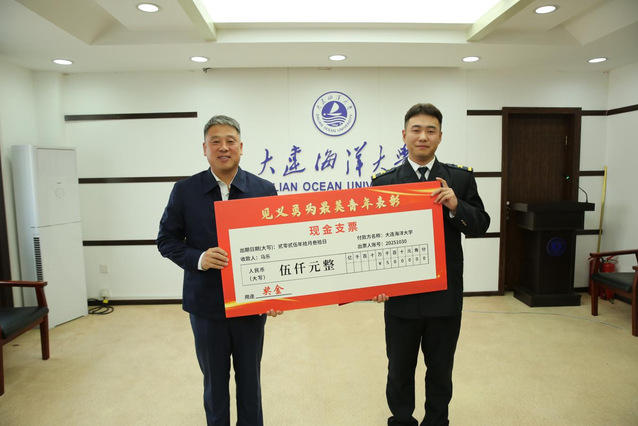 衣庆焘对马乐见义勇为的行为进行了高度褒奖,并号召我校广大学生向马乐学习。李智军为马乐颁发了“见义勇为”荣誉证书及奖金。航海与船舶工程学院团委书记宋敬星宣读了受助亲属的感谢信;马乐现场分享了自己英勇救人的事迹与他的心路历程,充分展现了我校青年学子崇高的道德品质和强烈的社会责任感,以实际行动诠释了新时代青年的责任与担当,为广大学子树立了学习的榜样。