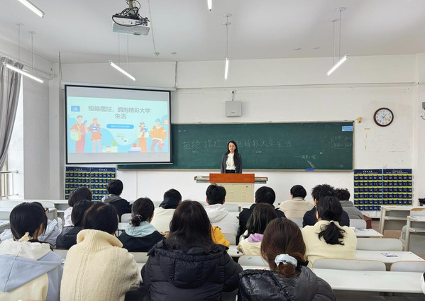 班会上,同学们围绕“拒绝摆烂,拥抱精彩大学生活”主题踊跃发言,查摆了自己目前生活和学业方面存在的问题以及如何主动规划大学生活的思考。刘冰冰认真听取了同学们的发言,对班会主题的现实意义和同学们的积极表现给予高度评价。她结合团委工作实践,向同学们提出三点希望,要树立正确价值观,拒绝“躺平”心态,勇于面对挑战,在奋斗中实现自我价值;要主动融入校园生活,积极参与社团活动、志愿服务和社会实践,拓展视野、提升能力;要科学规划时间,统筹学习与生活,培养健康作息和良好习惯,让每一天都充实而有意义。