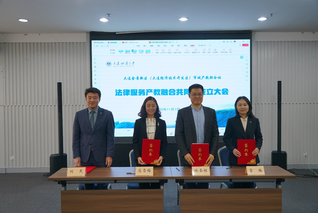 11月7日,大连金普新区市域产教联合体法律服务产教融合共同体成立大会在我校黑石礁校区图书馆多功能厅召开。此次大会聚焦区域产业发展与法治人才培养,以创新法治人才培养模式、深化产教融合为核心,推动法律服务与企业需求精准对接。辽宁省教育厅政策法规处处长杨爽,大连金普新区司法局局长雷楠,金普新区市域产教联合体副秘书长、大连职业技术学院产学研协作办公室主任林圣栋,辽宁政德律师事务所主任刘爽,我校党委书记衣庆焘及海洋法律与人文学院主要负责人出席大会。大连海事大学、东北财经大学、辽宁师范大学、大连民族大学、大连医科大学、大连大学、辽宁警察学院、大连财经学院、辽宁轻工业学院以及辽宁东亚律师事务所、辽宁宪义律师事务所、辽宁光晟律师事务所、辽宁誉晟律师事务所、辽宁秦海律师事务所、辽宁利金律师事务所、北京德恒(大连)律师事务所等各兄弟院校、合作律师事务所相关负责人参加会议。