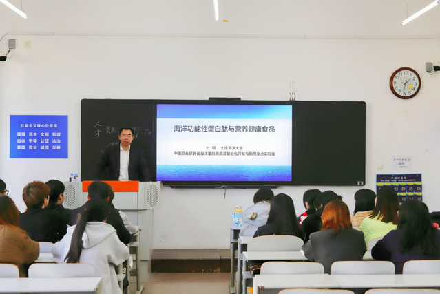 在海洋食品英才班的“食品科学技术导论”课堂中,杜明以“大食物观”和“健康中国”战略为背景,指出未来食品领域正朝着“人工智能赋能”与“生命健康导向”两大方向深度融合发展。他结合团队在海洋功能性蛋白肽领域的科研实践,具体阐释了如何从海洋生物资源中挖掘活性成分,并借助智能设计与精准递送技术开发新一代营养健康食品,为学生指明了海洋食品科技与人类健康紧密结合的发展方向。