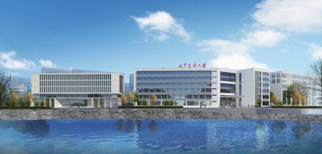 左侧水产生命科研实训楼效果图,右侧水产良种繁育实践中心(水产生命大楼)效果图
