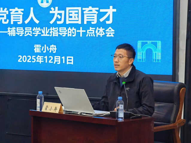 霍小舟以《为党育人、为国育才:辅导员学业指导的十点体会》为题,围绕“评价—分流—跟踪—反馈”一体化学业支持体系,阐释“谈心谈话统一思想认识、精品活动丰富学业载体、导师资源拓宽学术视野、朋辈帮扶激发内生动力、名师讲坛打造第二课堂、人文素养唤醒自我驱动、每日打卡强化过程管理、早读晚考夯实专业基础、心语写作完善自我认知、考研服务助力深造梦想”等十条经验,为我校学生工作提供了可复制、可推广的范本。