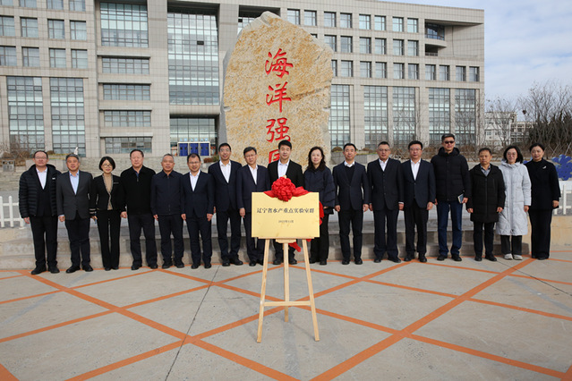 会后,在黑石礁校区强国广场,许爱东、杜明、吕大强共同为“辽宁省水产重点实验室群”揭牌。