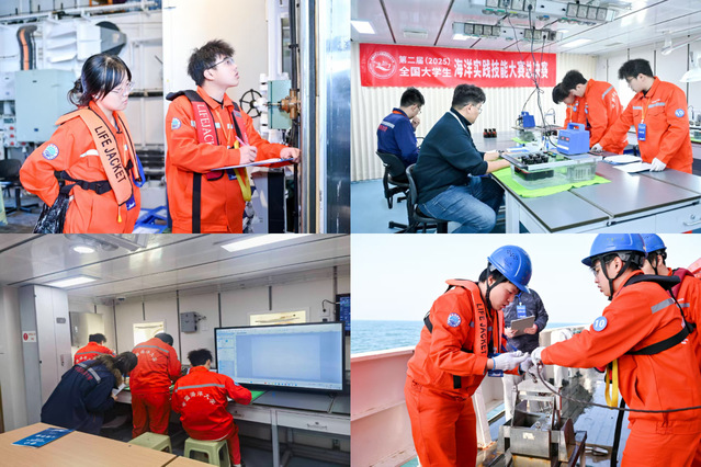 大赛以“锤炼实践技能,传承海洋精神,培育海洋人才”为理念,决赛在我国自主研制的“东方红3”科考船上进行,设置物理海洋学、海洋化学、海洋生物学与海洋地质学四大方向,涵盖多项内、外业实操项目,共计9个项目的考核。在为期一天的赛程中,“深澜”团队完成了海水采样与pH测定、CTD施放、浮游生物拖网鉴定及底质取样分析等任务,展现了扎实的专业技能、理论素养与团队协作能力。