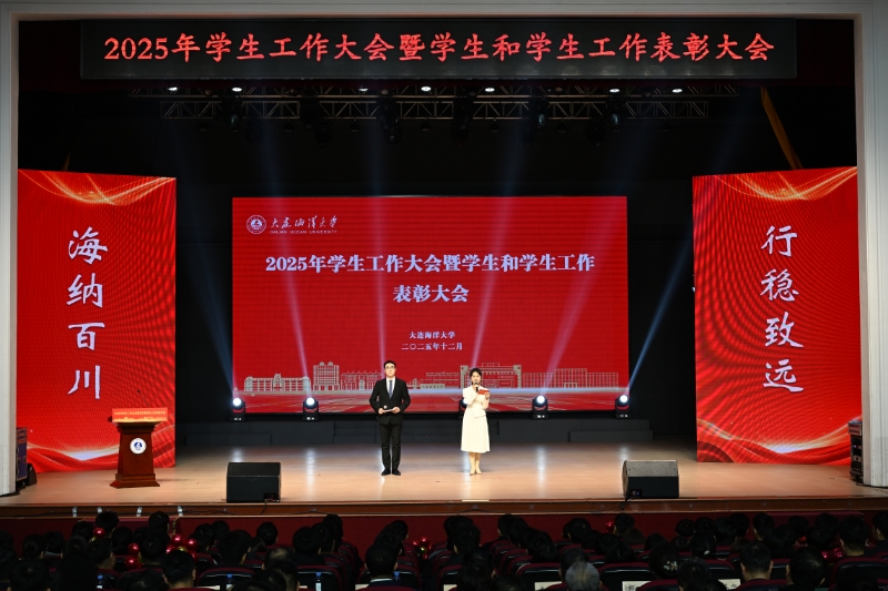 12月19日,我校在黑石礁校区俱乐部隆重召开2025年学生工作大会暨学生和学生工作表彰大会。校党委书记衣庆焘出席大会并讲话,校长杜明、校党委副书记李智军、校长助理卢昆,党委常委彭杰、邓立志、周东旭出席大会。各职能部门负责人,各学院领导班子成员,全体专职辅导员,班导师代表,获奖师生代表及在校学生代表共同参会。大会由信息工程学院辅导员宋子奇和食品科学与工程学院2025级新生马爱迪主持。