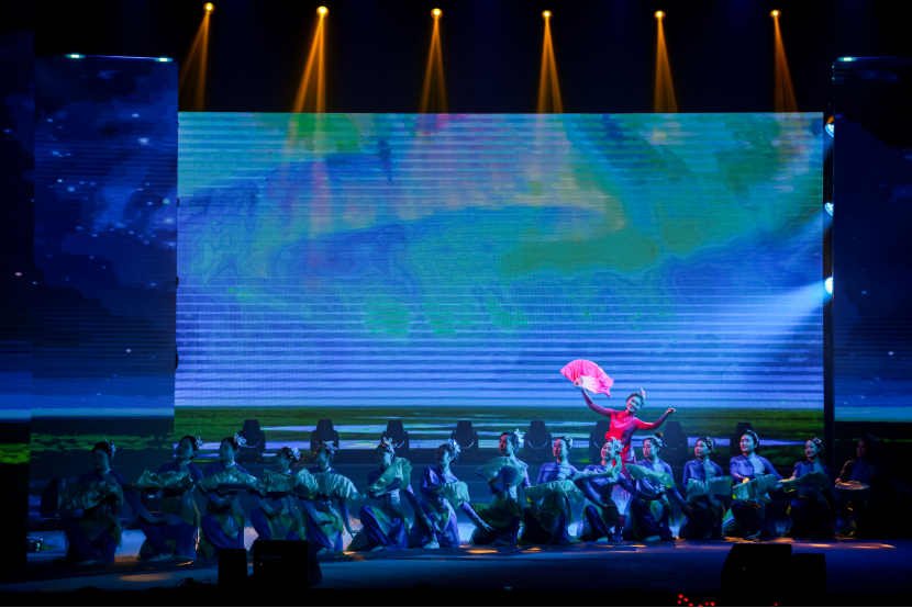 第三篇章“向海图强・奋楫笃行强国梦”中,水产与生命学院、经济管理学院、海洋法律与人文学院联合呈现的民族舞串烧《多彩中华》,展现了56个民族相亲相爱的美好图景;马克思主义学院师生的歌伴舞《一路生花》,寄托了对青春梦想与学校发展的美好期许;海之声合唱团的《星辰大海》以纯净歌声勾勒梦想蓝图;中新合作学院的舞蹈《仕风》彰显中华儿女的儒雅风骨;海洋与土木工程学院的歌伴舞《春风十万里》,用激昂歌舞描绘新时代奋进画卷。