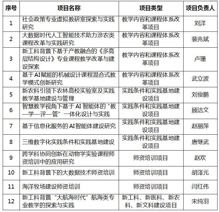 近日,辽宁省教育厅发布了《关于公布第三批辽宁省高质量产学合作协同育人项目名单的通知》,我校12个项目获批,其中,教学内容和课程体系改革项目4项,实践条件和实践基地建设项目4项,师资培训项目3项,新工科、新医科、新农科、新文科建设项目1项。截至目前,我校共获批辽宁省高质量产学合作协同育人项目52项。