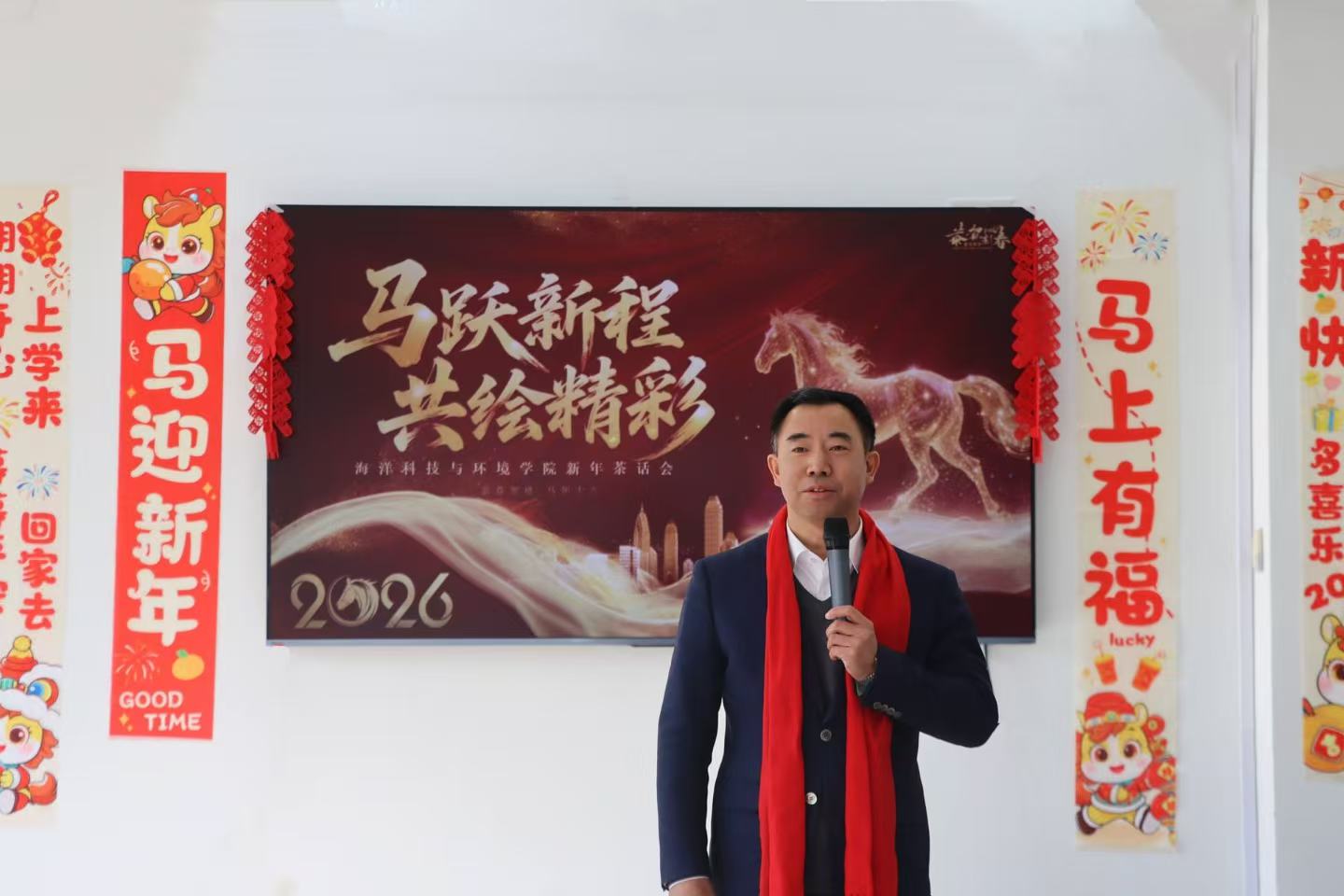 新春将至,暖意融融。1月21日,海洋科技与环境学院在北院办公楼举办2026年新年茶话会。校党委书记衣庆焘、校长杜明、校长助理卢昆,国家贝类产业技术体系首席科学家、原校长宋林生教授受邀出席,与全院教师欢聚一堂,共贺新年,共话学院发展新蓝图。