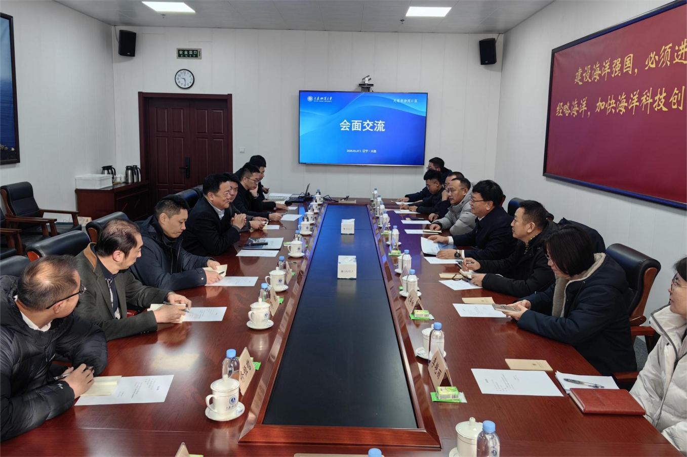 衣庆焘代表学校党委对滕毓磐一行的到访表示热烈欢迎,对沙河口区委、区政府长期以来给予学校发展建设的支持表示感谢。他指出,学校当前正围绕“十五五”规划目标,着力推进校园基础设施升级与科研平台建设等工作,始终与沙河口区发展同频共振,在海洋人才培养、科技创新、社会服务等方面积极贡献高校力量。希望以此次调研为契机,进一步深化区校协作,在周边环境优化、产学研融合等方面拓展合作,实现优势互补、共同发展。