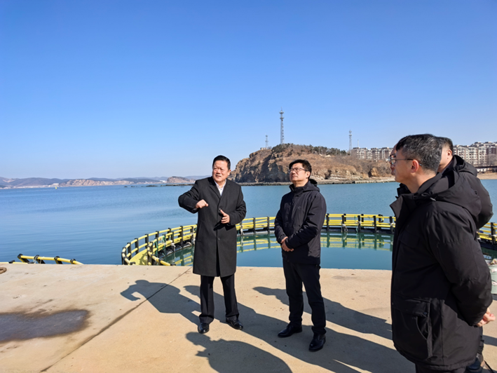 调研组一行首先抵达大连凡纳滨海洋牧场有限公司,实地察看企业养殖设施布局、运行管护等情况,深入了解企业发展需求,进一步明确了双方合作的核心切入点与攻关方向。随后,调研组前往南部渔港开展实地考察,详细了解渔港的地理位置优势、现有设备设施配置及产业承载能力。