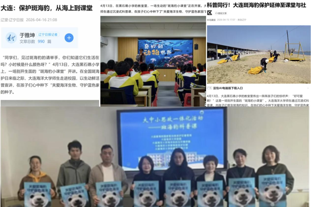 近日,辽宁日报·辽望客户端、半岛晨报及大连发布等媒体平台对我校斑海豹保护社团开展的斑海豹保护科普课堂活动进行了专题报道。